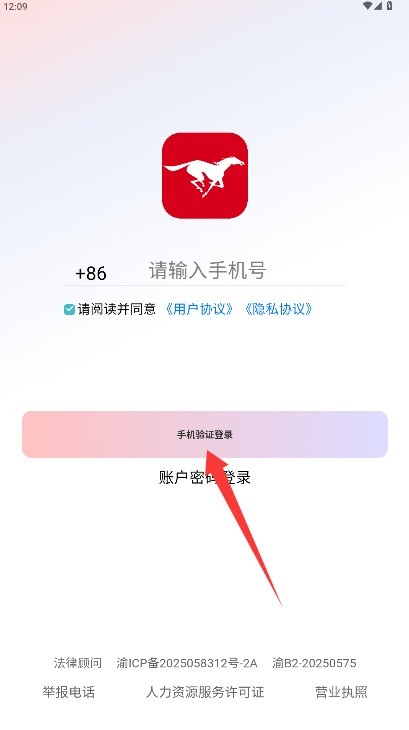 2.在登录页填手机号,勾选同意相关协议,点手机验证登录来注册账号。