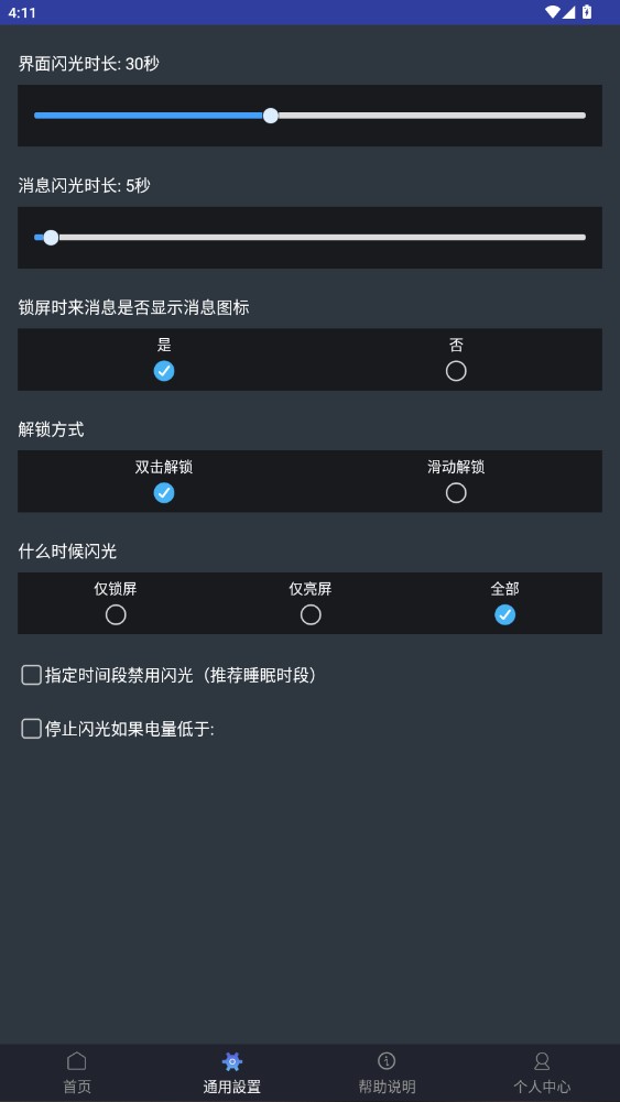 4.在通用设置里,能设置界面闪光时长、消息闪光时长等。