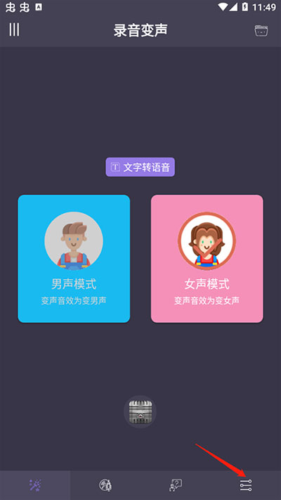 1、想要正常使用“专业变声器”,大家就得先在首页选择变声的模式,这里以“男生模式”为例子,点击下方的麦克风进行录音