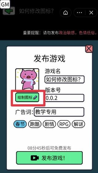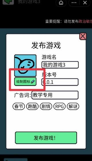 2、来到“发布游戏”页面,选择“绘制图标”(这个按钮有点小,可能很多人没看到...)
