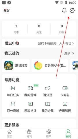 1、首先我们进入到百分网游戏盒的“我的”板块中,点击“设置”;