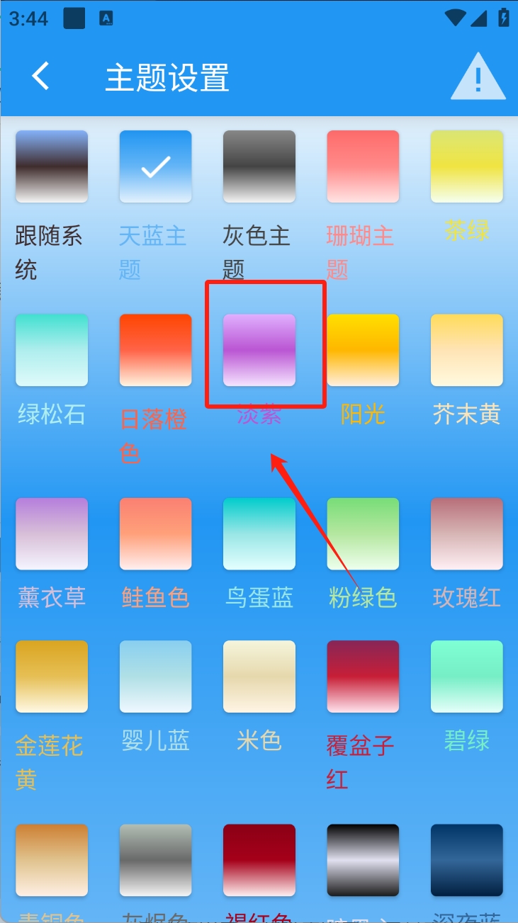 2、在主题设置中,选择您喜欢的主题颜色。点击颜色块即可应用新主题。
