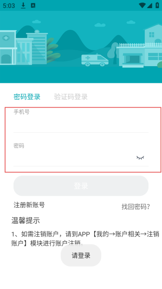 2、进入我的界面输入手机号和密码。