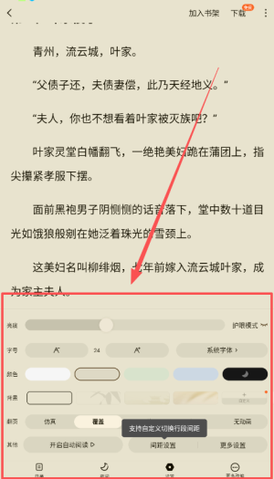 4、阅读设置选项允许用户自由调整界面背景和字体样式,打造最符合个人喜好的阅读环境,让您畅享无阻阅读乐趣。