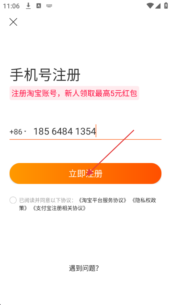 4、勾选同意相关协议,点击【立即注册】,完成淘宝账号注册并登录。