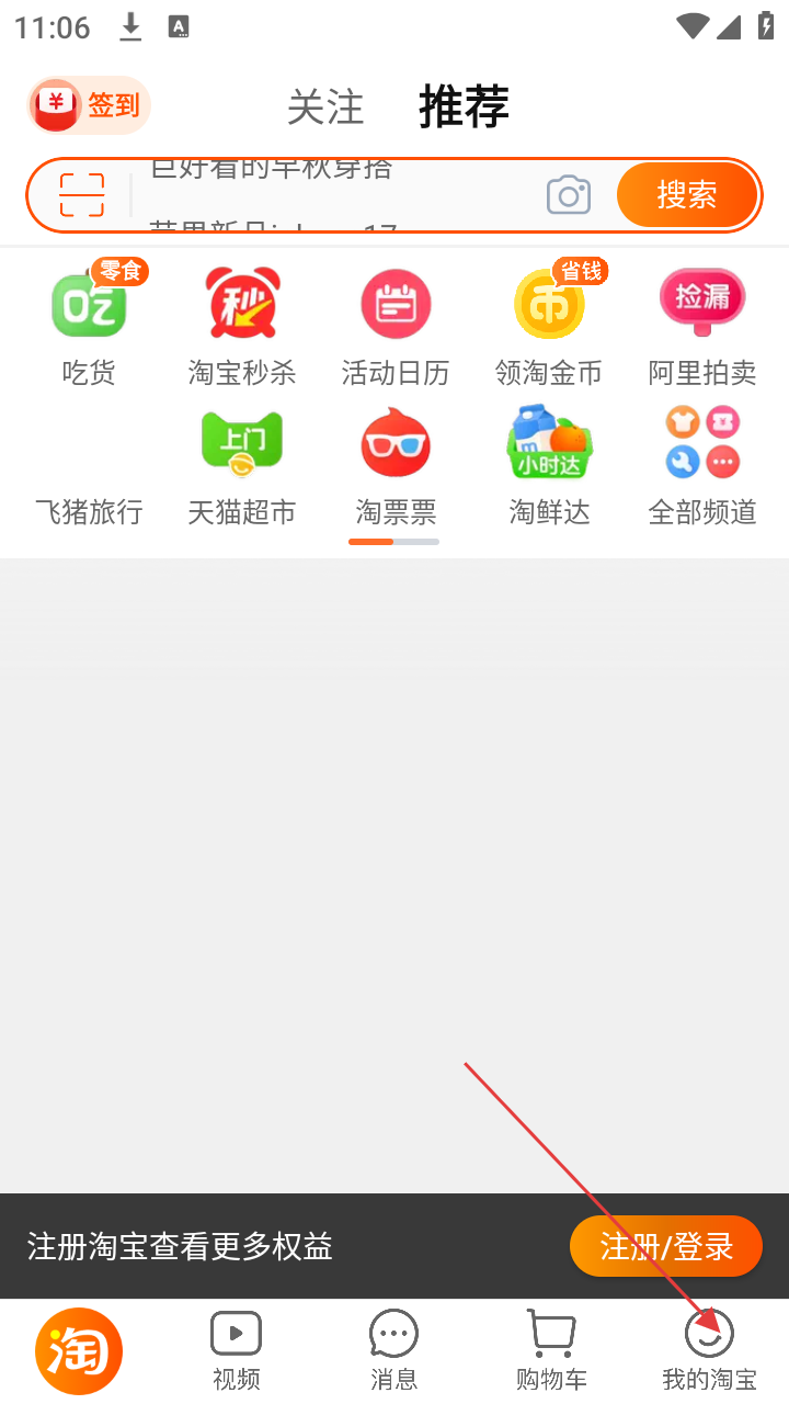 1、打开淘宝,进入首页,点击右下角【我的淘宝】,进入登录页面。