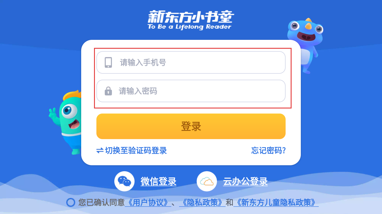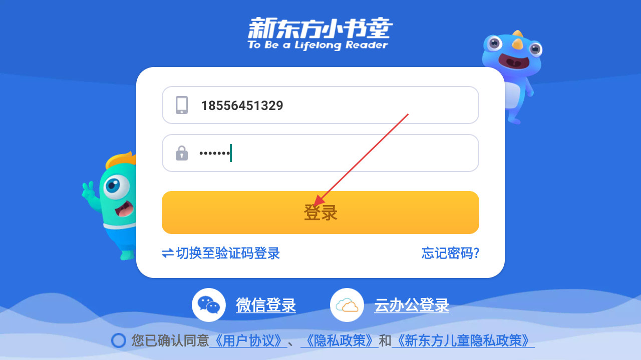 4、输入完毕后,点击【登录】按钮,即可尝试登录“新东方小书童”。