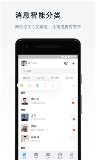 3.钉钉提供了文字、语音、视频、文件等多种沟通方式,支持实时聊天和群组聊天,让团队成员之间可以快速高效地沟通。