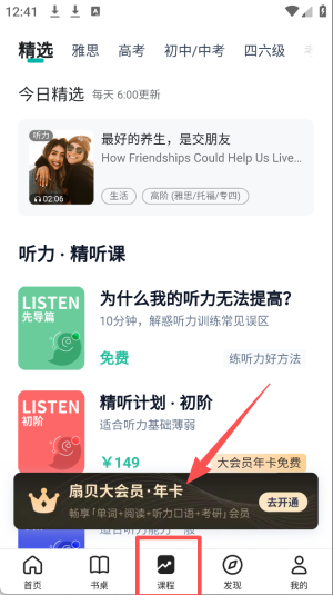 3、选择课程,点击“课程”图标,浏览并选择适合你的英语课程。