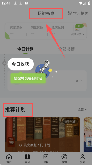 2、查看书桌,点击“书桌”图标,查看和管理你的学习计划。
