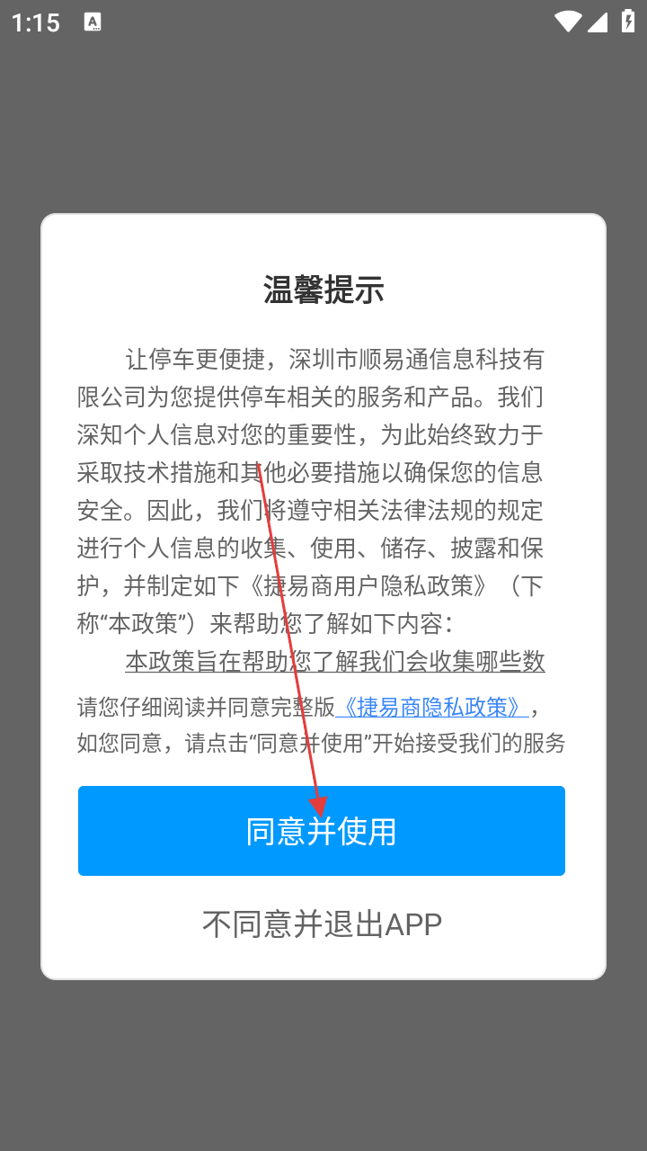 1、首次启动应用,在温馨提示弹窗点【同意并使用】,接受隐私政策。