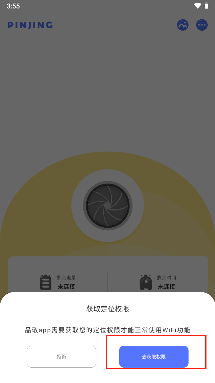 3、点击“去获取权限”按钮,授权应用获取定位权限。