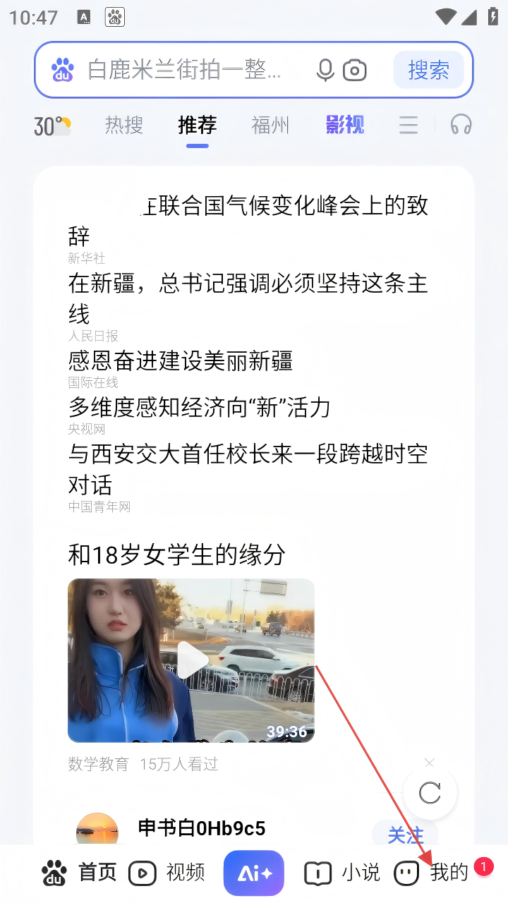 1、打开百度APP,点击底部【我的】,进入个人页面。