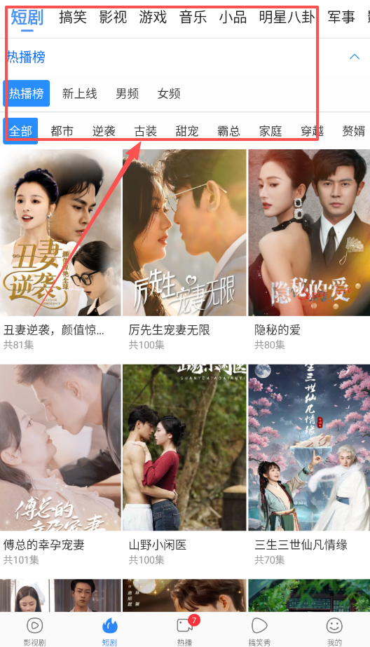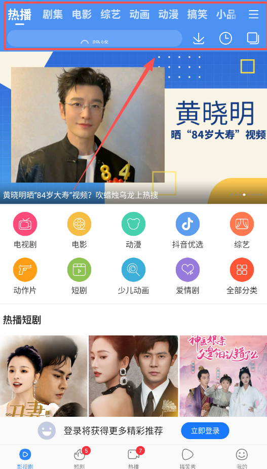 2、若想看短剧或影视内容,可在首页点击看剧页签,其上方设有“关注”“推荐”“短剧”“竖屏”“热点”等分类标签,方便你筛选。