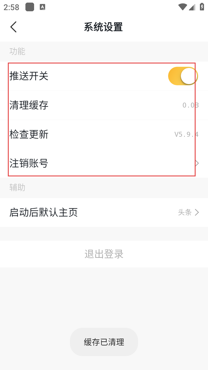 3、在系统设置界面,可进行清理缓存操作,还能设置推送开关、检查更新等,优化应用使用体验。