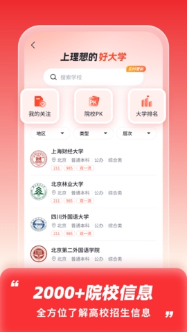 1、全新志愿填报助手帮助你选择好学校,选择适合自己的专业,给你全方位服务。