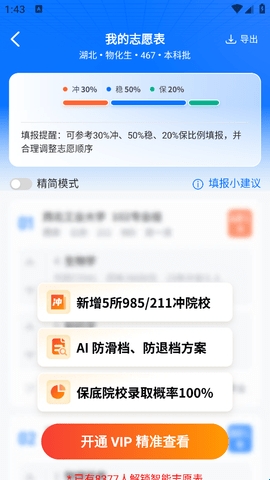 4、然后就能一键快速为你生成志愿表,可以导出查看。