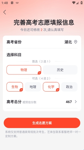 3、返回去就可以看到信息已经修改成功,可以重新生成志愿表。