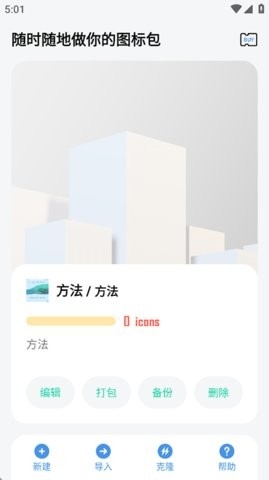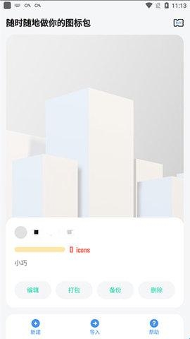 1、首先,下载并打开“做你的图标包”APP,进入主界面后点击“新建图标包”按钮,开始创建图标包。