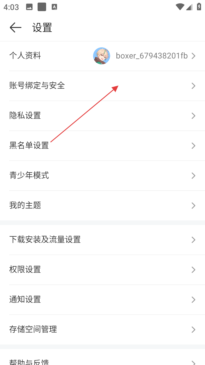 3、在设置界面,找到【账号绑定与安全】选项并点击,进入账号绑定与安全设置页面。