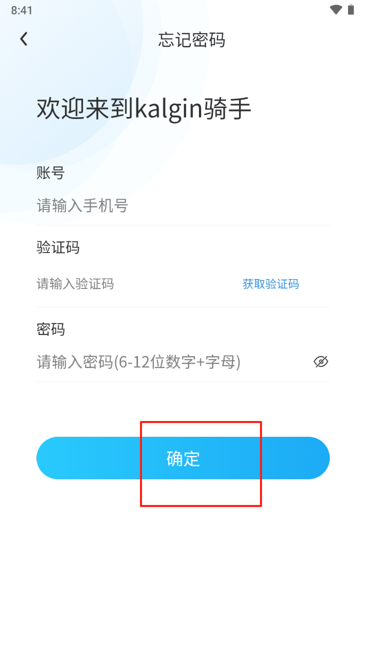 4、找回密码:输入手机号和验证码,设置新密码后点击“确定”找回密码。