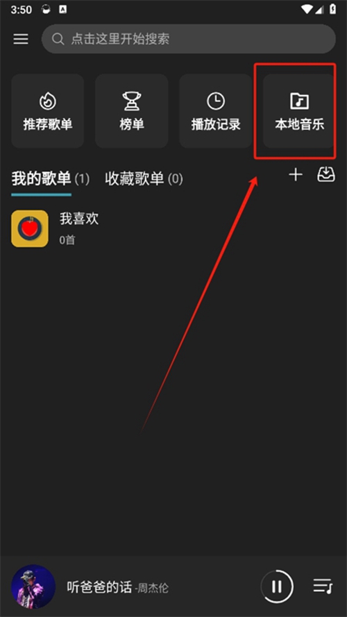 4、完成后,回到首页,点击本地音乐。