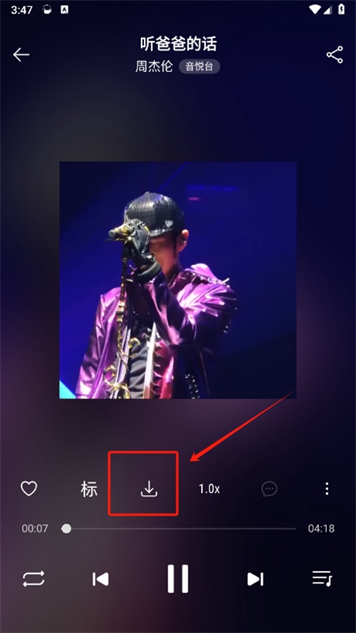 2、然后选择想要的音乐,点击进入播放页面,点击按钮。