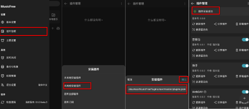 【设置】→【插件管理】→点击右下方加号→【从网络安装插件】→输入音源地址→【确定】