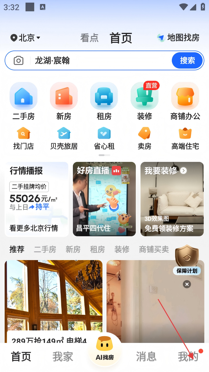 1、打开贝壳找房APP,进入首页后,点击右下角【我的】。