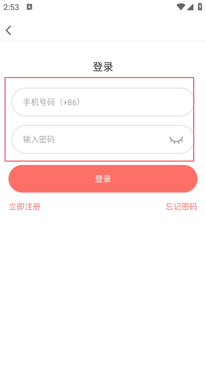 4、在登录界面,可输入【手机号码(+86)】和密码登录,也可点击【立即注册】或【忘记密码】进行相应操作。