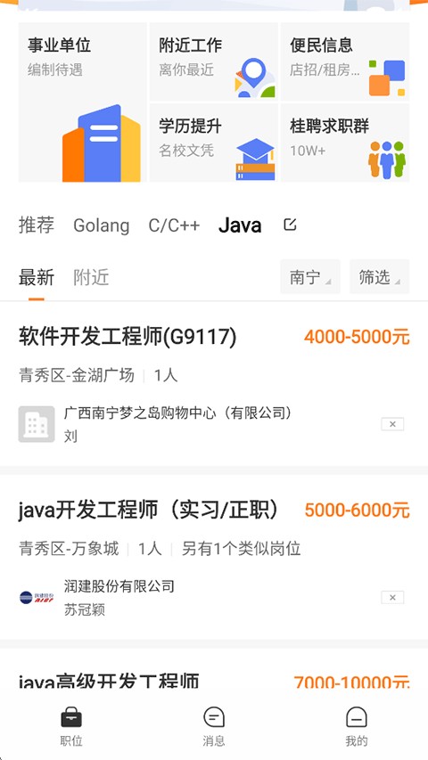 1.海量职位信息:桂聘App提供全职、兼职、实习、事业单位等多种类型的职位信息,覆盖桂林、柳州、南宁等广西多个地级市,满足不同求职者的需求。