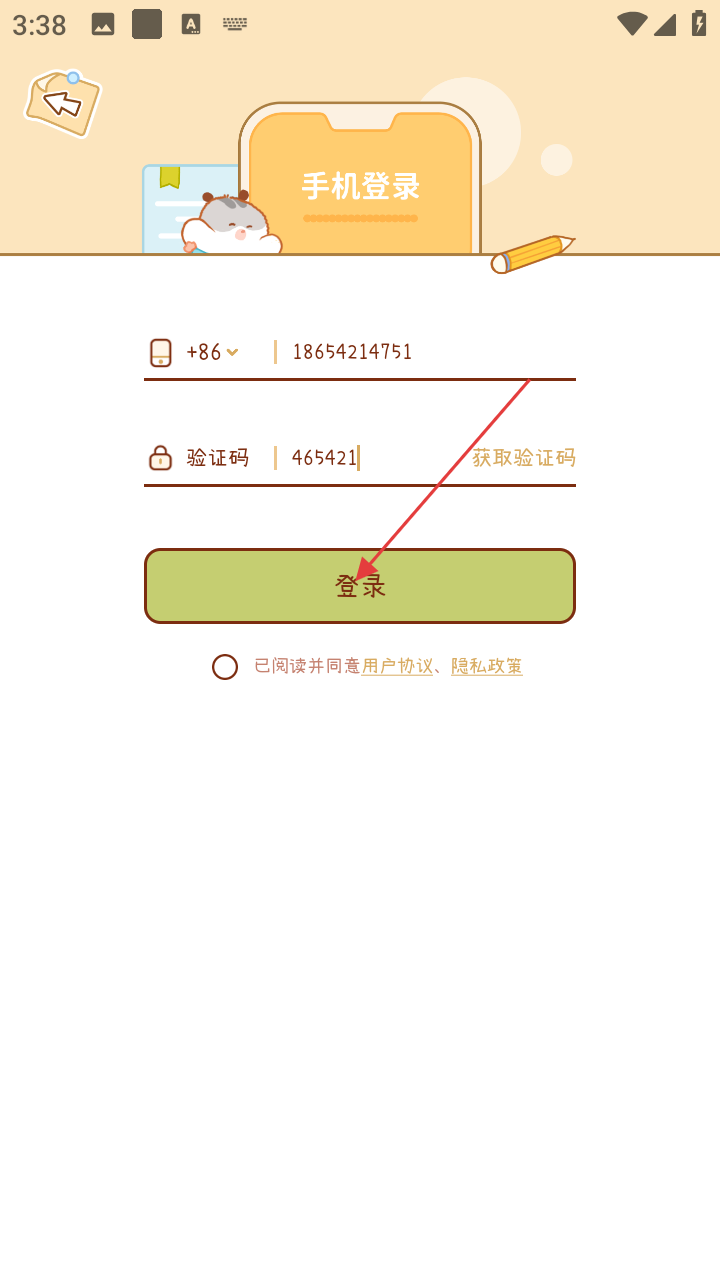 4、将收到的验证码输入对应框内,确认信息无误后点击【登录】按钮,即可完成奶酪单词APP的登录流程。