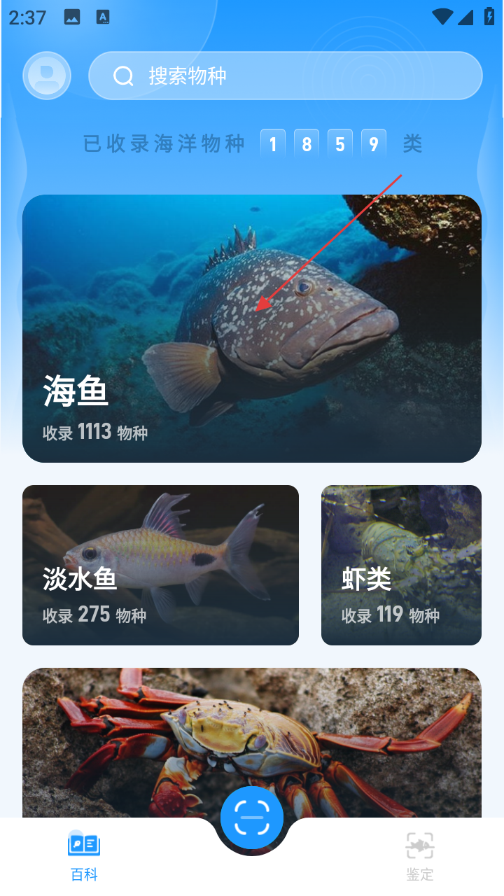 1、进入应用首页,点击【海鱼】分类,进入海鱼详情页。