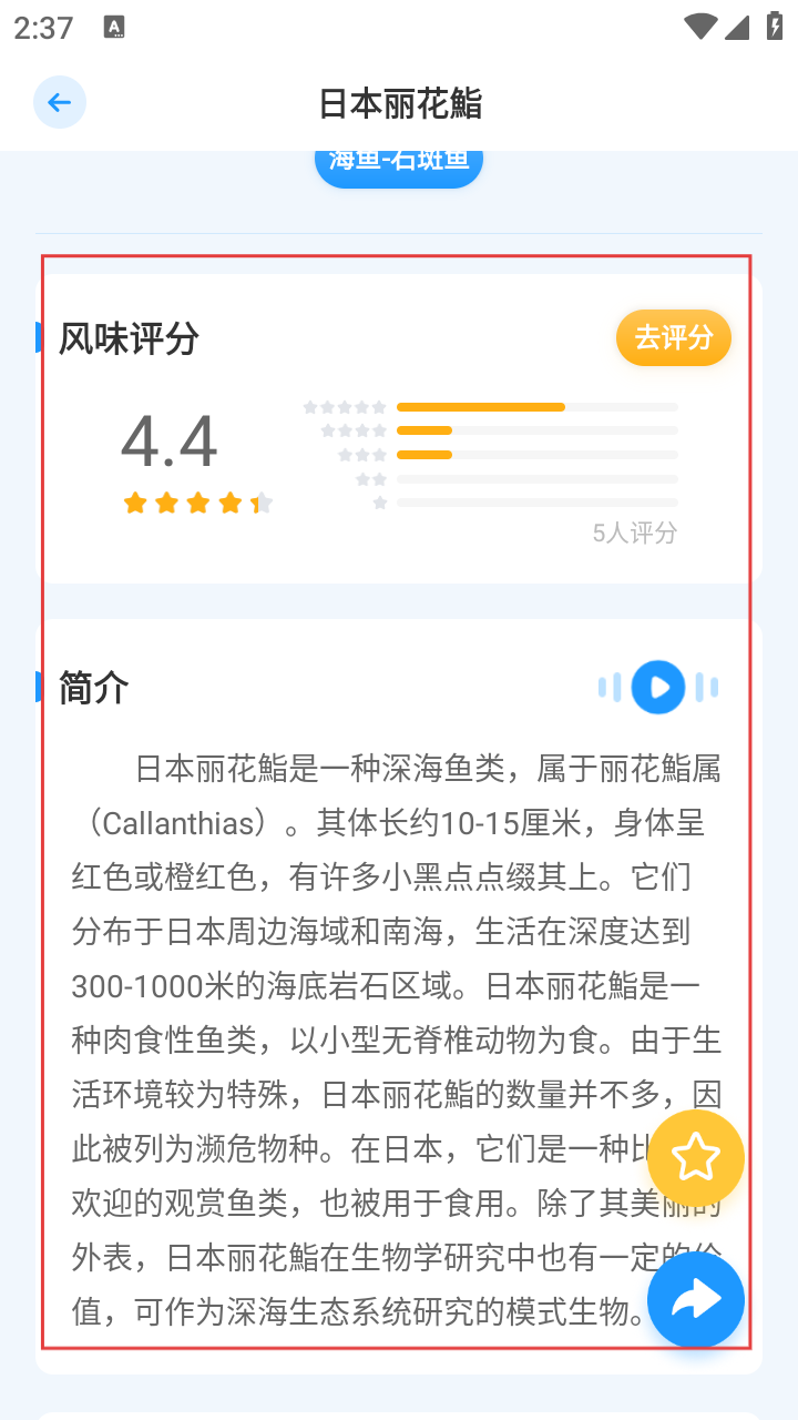 4、进入详情页,可查看【风味评分】与【物种简介】等信息。