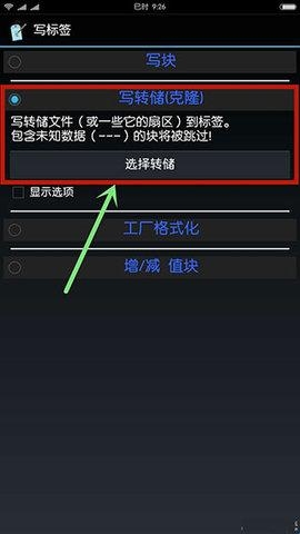 9、勾选保存的标签,点击“选择转储”进行下一步(需将空白卡置于手机NFC感应区)。