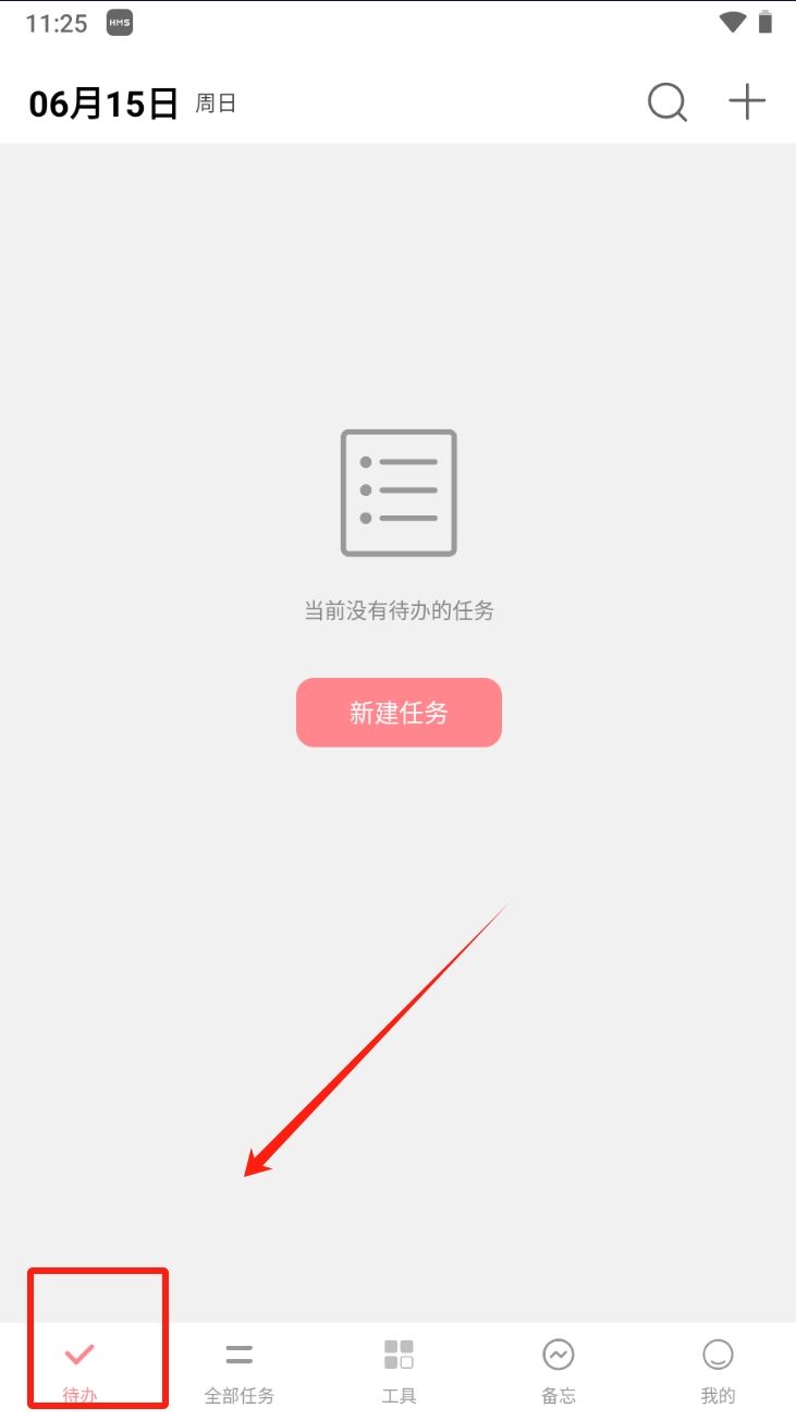 1、点击的“待办”图标,进入待办事项页面,点击“新建任务”按钮添加新任务。