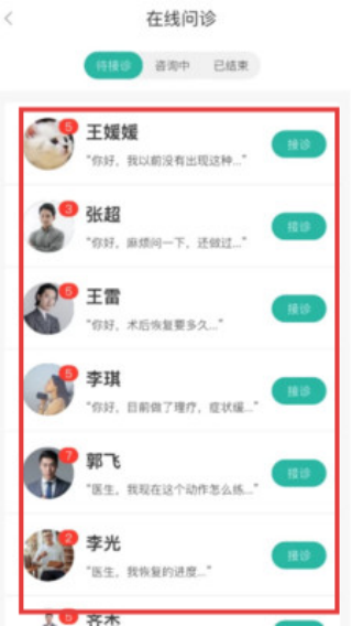 3、在此页面即可查看患者咨询。