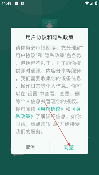 1、打开应用查看协议点击同意。
