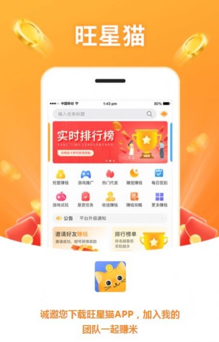 旺星猫是一款好友加兼职赚钱软件,是需要在有任务的平台上,加好友按照要求赚钱,同时促进平台和收入,提供电好东西分享多种任务的兼职应用,可以说不挑用户群,零碎时间就可以高效的做任务,方便了订单的综合应用,更方便高效的使用。感兴趣的小伙伴赶快下载吧~