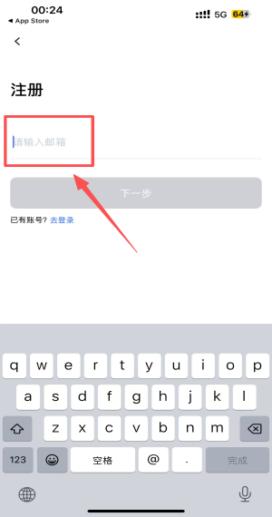 4、在注册界面,输入邮箱地址并点击“下一步”按钮继续注册流程。