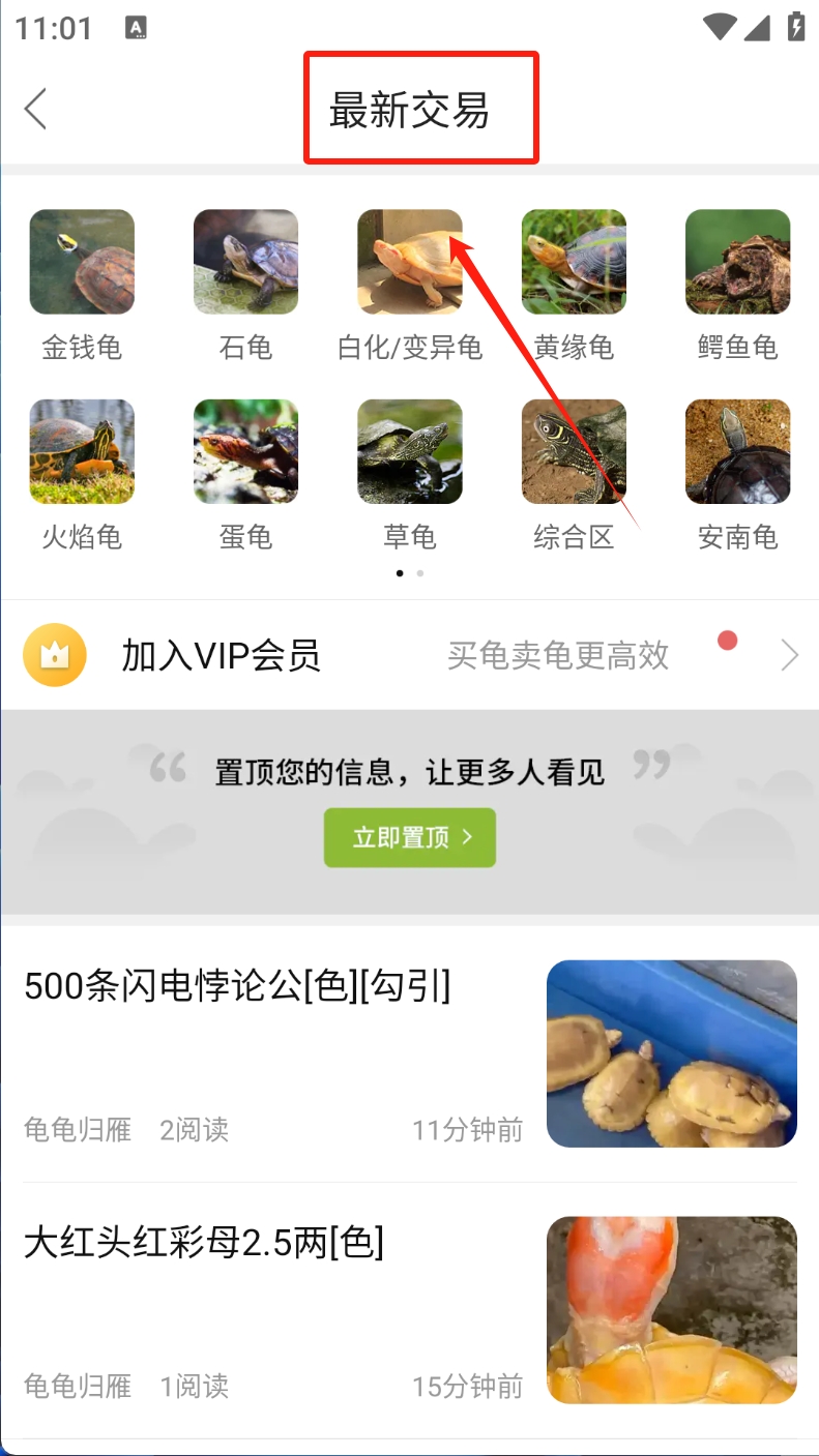 2、在交易页面,点击您感兴趣的商品类别,如“金钱龟”。