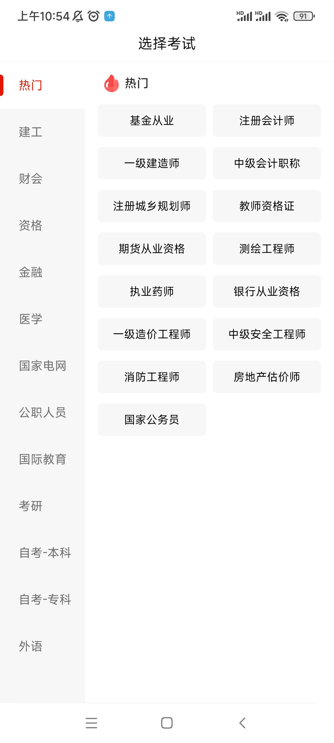 1、首先安装好准题库,安装完成后启动应用,就能看到主界面。在主界面,你能够浏览所有支持的考试科目,进而选择你所需的备考方向。