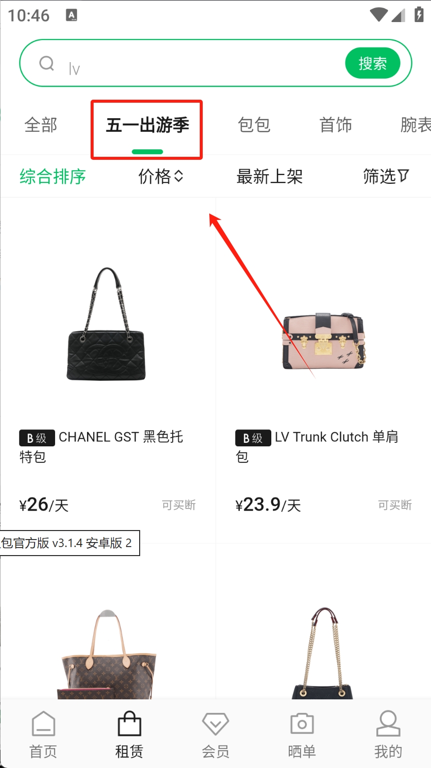 2、选择“五一出游季”找到心仪包包。