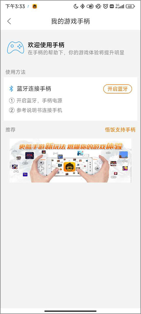3、开启蓝牙功能,按照提示完成手柄连接。