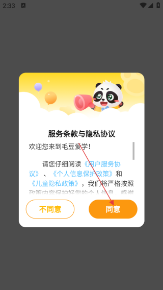1、打开应用查看条款选择同意。