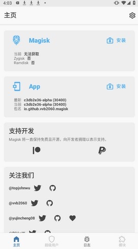 阿尔法面具30400版本是一款专门为极客宅用户开发的ROOT工具,软件本身完全开源,没有任何的广告,所有的功能均可免费使用,只不过在上手之前,需要您有一定的专业知识。它主要提供超级管理员权限获取、ROOT管理、权限隐藏,这三大功能板块。您还可以查询过往的操作记录及错误日志。ROOT有风险,请谨慎使用,欢迎下载。