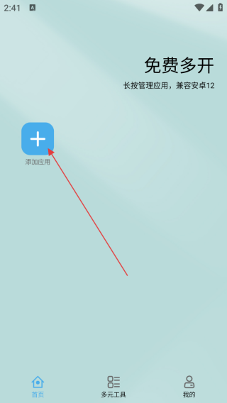 2、进入应用首页点击加号。