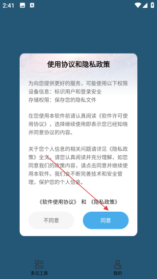 1、打开应用查看协议点击同意。