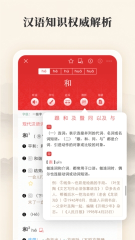 2、汉字的解析、发音、用法、拼音、近义词、反义词都有,基本上和实体词典一样。