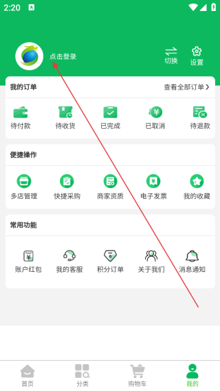 2、进入我的界面点击登录。